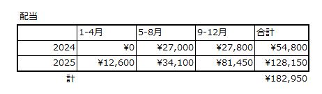 2025年通算では128150円、2024年以降の新NISA通算では182950円となりました。